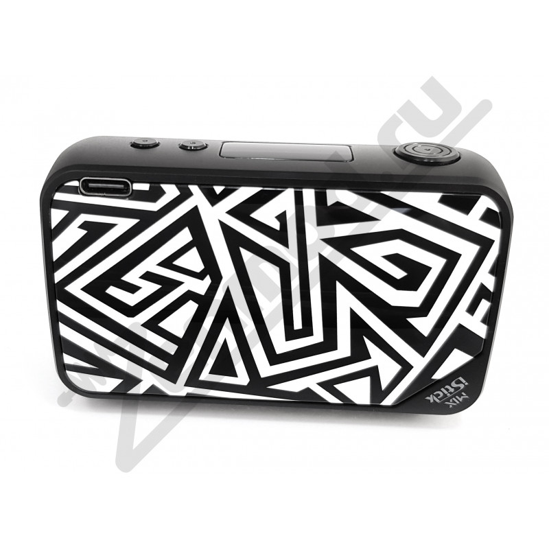 iStick Mix получил стандартные размеры для своего сегмента: 83 мм в высоту и 27 мм на 52 мм по граням, что позволяет принять на борт атомайзеры диаметром в 25 мм без бортика. Рама выполнена из стали, а по бокам располагаются декоративные панели: Resin с одной стороны, и глянцевая с другой.
